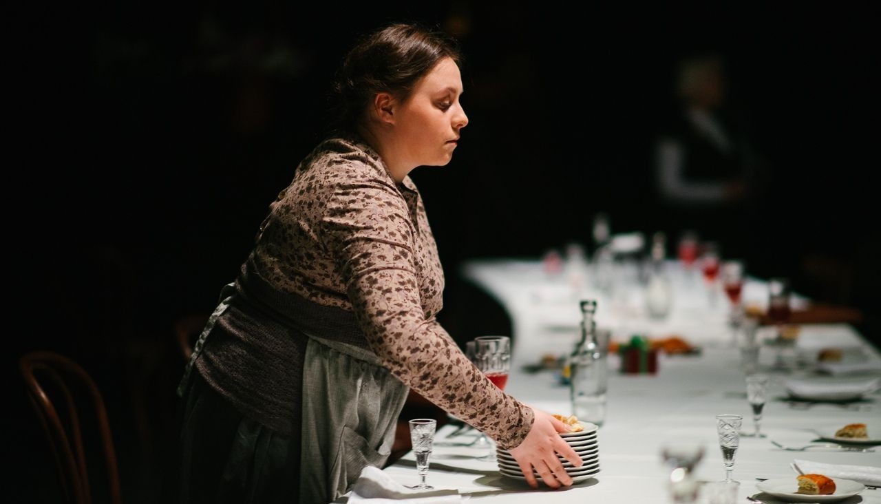 Между героями и публикой — тонкая грань. Пришедшие на спектакль ещё рассаживаются на свои места, а в зале уже накрывают на стол в ожидании гостей. У младшей сестры Ирины — именины! Первый ряд театралов участвует в застолье, сидя за белой скатертью с чеховскими героями и угощаясь самыми настоящими пирогами и напитками. Тут же поминая отца трёх сестёр, встают с бокалами в руках. «Надеюсь, что и на следующих показах зритель проявит душевную тонкость: когда поминают человека, неплохо бы встать», — Глеб Володин.